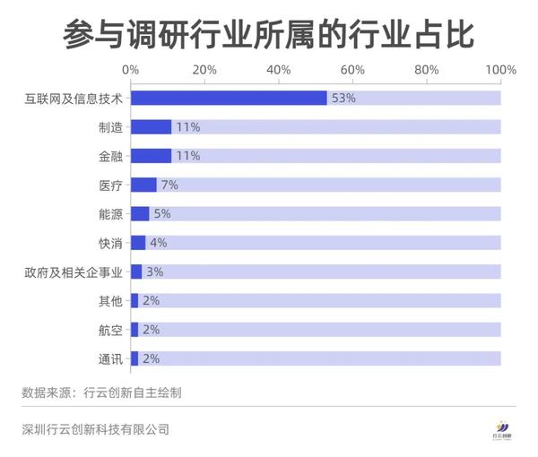 参与调研的企业中,有53%的企业是来自互联网及信息技术行业,可见互联网厂商成为当之无愧的云原生技术应用排头兵。