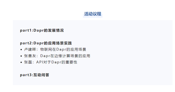4月14日晚上8点,《行云圆桌派第一期:云原生Dapr的发展与实践》直播来啦!活动由米兰milan创新CEO马洪喜,微软最有价值专家、.NET技术专家张善友,微软云技术布道师卢建晖,米兰milan创新云原生架构师张磊四位嘉宾与大家聊聊Dapr的发展情况和落地遇到的问题、Dapr应用场景实践、未来展望等。